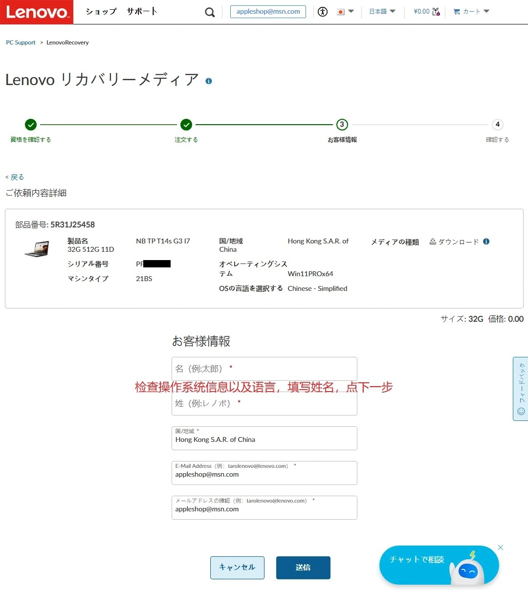 在订单确认页面中,核对设备与系统信息无误后,填写申请人的姓名,然后继续下一步。此步骤完成后,恢复介质的数字订单即提交成功。文章源自堕落的鱼-https://www.duoluodeyu.com/2833.html