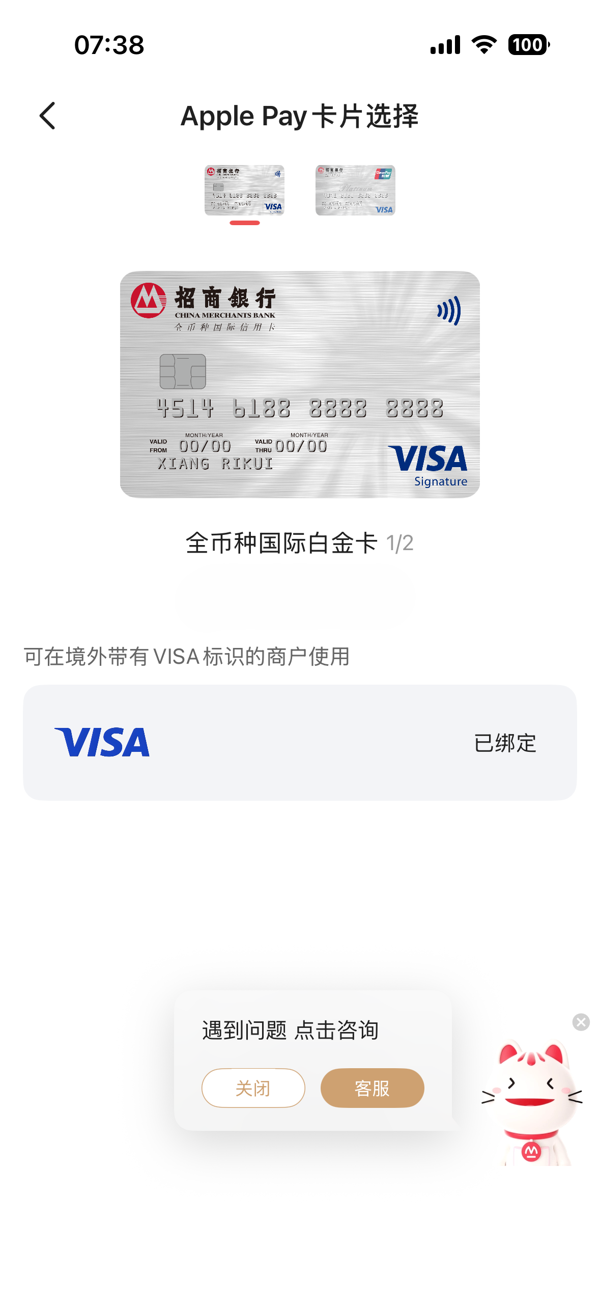招行visa全币种卡添加applepay界面及添加后界面:文章源自堕落的鱼-https://www.duoluodeyu.com/2835.html