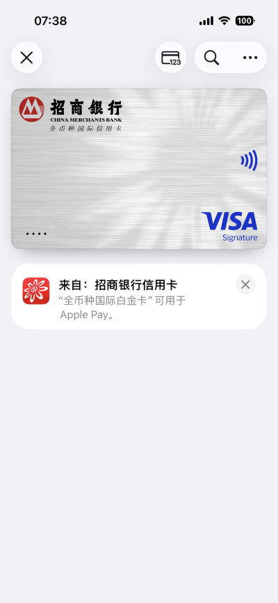26年1月15日早上7:30分,招行掌上生活更新到最新的9.3.9版本后,已可以添加国内招商银行发行单标visa及双标visa卡到Applepay。