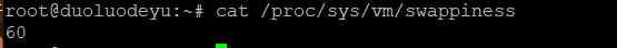 系统显示类似如下,表示当物理内存低于60%(100-40)时使用swap空间。(swappiness参数越低,表示Linux系统尽量少用swap分区,多用物理内存;swappiness参数值越高,表示使内核更多地去使用swap空间。)文章源自堕落的鱼-https://www.duoluodeyu.com/2836.html